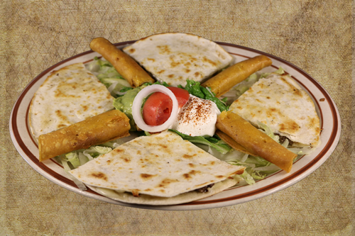One large beef or chicken fajita quesadilla & four mini chicken flautitas. Served with fresh guacamole & cold sour cream.